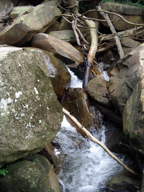好不容易看到下切的水路,就開始走水路啦~~這裡真的跟網路上講的一樣,受到颱風肆虐,可是沒有整頓,水上都是斷木,讓我們還可以走獨木橋呢!