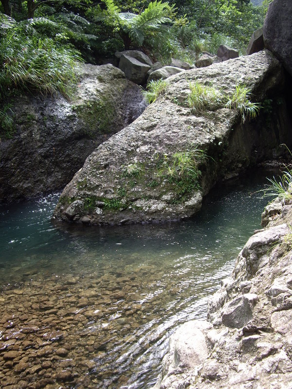 這邊玩水大家也是很愉快~~只有我...發生了件悲劇..>"< 因為想說這次只是小玩一下~泡泡水罷了,就沒像剛剛游泳時摘掉眼鏡,就帶著眼鏡下水了,唉沒想到..意外就是醬發生的,眼鏡不久後就隨著我落水石掉入了水底,理論上我的氣是夠潛到水底看好ㄧ下的,可是因為旁邊就有一個小瀑布,水底實在很不清楚呀,加上眼鏡又是細框銀色....唉~~終於體會大海撈針的辛苦了...而且ㄧ直往水底游竟讓我的風褲因此爆裂...結果眼鏡沒找到褲子都爆了...