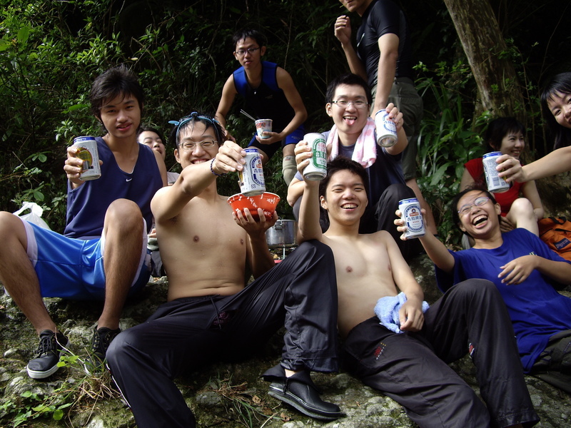 走ㄧ走前行到M形瀑布地方,大家就在旁邊的石頭上拿出鍋爐和泡麵開始了我們的午餐,不過呢~泡麵要好ㄧ下下,所以就先開始玩水啦!!
