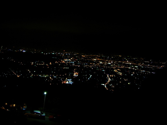 都來了陽金,自然就把文大當作第三站啦!雖然陽金一路起霧,但是今天夜景的能見度很高呢!應該是個漂亮的夜景吧(我沒戴眼鏡不知道)!不過可以看到有一大片雲覆蓋在台北city的上空,但是再往前望去,宜蘭方向似乎沒有雲呢!