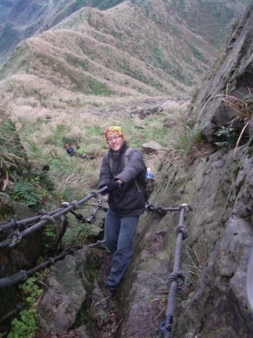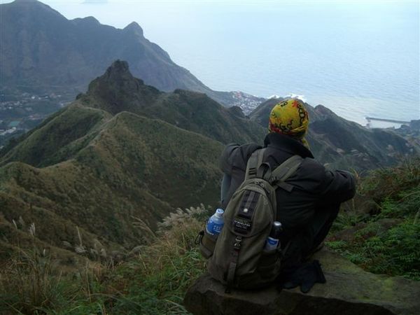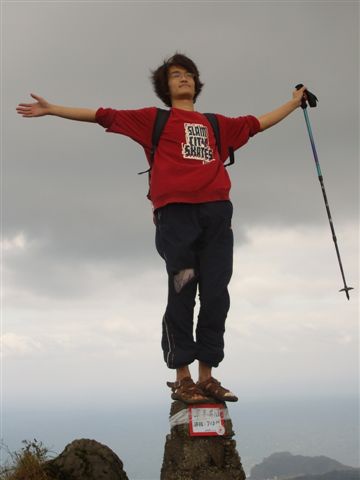 下半平山的大繩索後,一塊大石正是好景致,看山看海看人生,讓我這自以為陽光的人也要跑到石頭上看遠方裝一下憂鬱XD