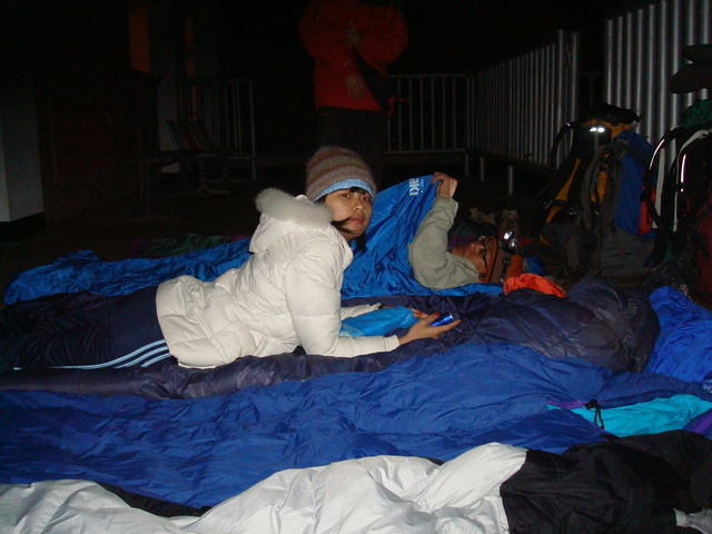 六七點就全部上床睡覺,七點過後沒電的山屋就已經伸手不見五指了