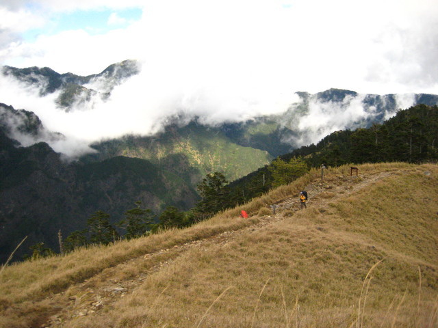 從東峰到今晚的睡覺地─369山莊,就算是平緩的稜線地形了,走起來一路風景秀麗,