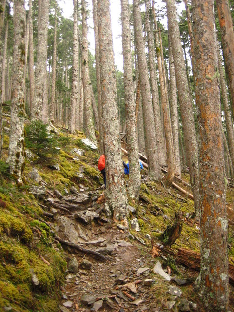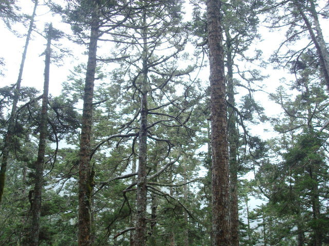 忽然天空被遮掩了、雨勢也被遮掩了,取而代之的是一整片高聳入天的冷杉純林