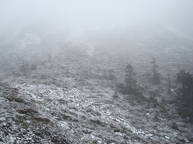 地下的殘雪一塊一塊地,但是隨著繼續向上前進,雪開始慢慢多了起來...