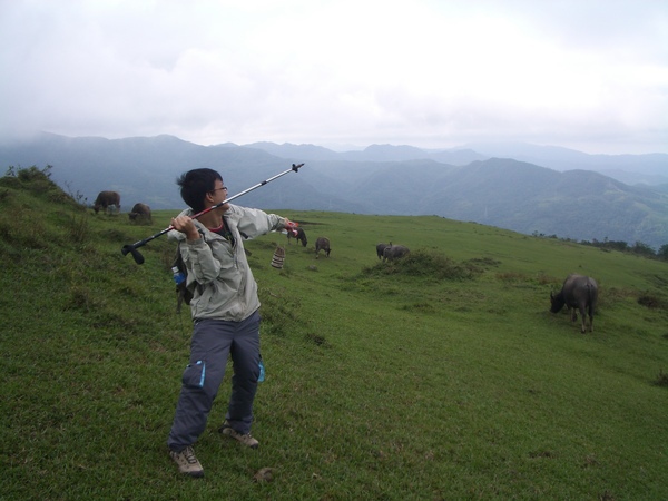剛下桃源谷後的稜線路段,滿滿地都是芒草,我跟KOD又開始照照馬上就落人後了